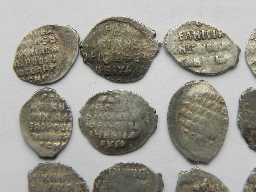 верхний ряд на монетке Мих. Фед в левом верхнем углу поместилась вся легенда. В общем монеты в неплохом сохране, копаны из песка, глубина 25-35см. В первый раз за 5 сезонов, как назвать не знаю (кошель или кладик), фото с места и видео имеется (на память). В общем на что можно расчитывать, монеты буду продавать, т.к интерес к пластике и литью. С ув. |