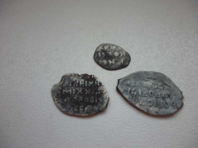 QUOTE(LEXXXEICH @ May 1 2017, 21:21) Всем доброго времени, сегодняшний коп выдал вот это,подскажите по определению и оценке. Заранее спасибо. Слева сверху денга псковская Довмонт строчник (в районе 4-5 т.р.), под ней 2 шт. московские денги Василия 3 |