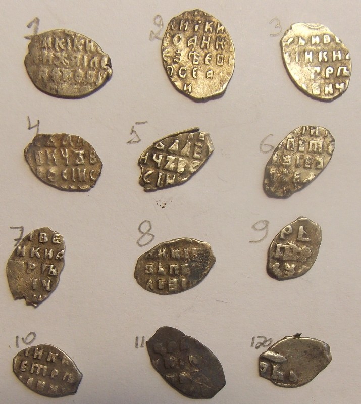 QUOTE(zharikow aleks @ May 9 2017, 13:18) Прошу определить и оценить удельные монеты. вес 0,80 Борис Константинович. Нижний Новгород. QUOTE(zharikow aleks @ May 9 2017, 13:21) еще. вес 0,70 Андрей Фёдорович, Александр Константинович. Ростов. QUOTE(zharikow aleks @ May 9 2017, 13:23) еще вес 0,73 и QUOTE(zharikow aleks @ May 9 2017, 13:25) еще вес 0,71 Анонимные монеты с титулом «великий князь». Нижний Новгород под властью Москвы. QUOTE(zharikow aleks @ May 9 2017, 13:27) еще Даниил Васильевич. Суздаль. QUOTE(zharikow aleks @ May 9 2017, 13:31) еще Андрей Дмитриевич. Можайск. |