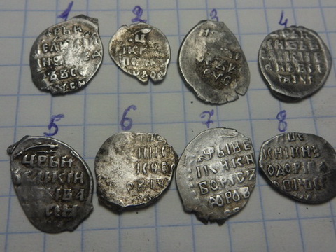 QUOTE(Poligrafff @ May 18 2017, 23:00) Повторно отсылаю. Или тут всё безнадежно совсем? 1. Денга Ивана Грозного КГ 45 VII ст. редкости 2. Денга Федора Ивановича КГ 105 простая 3. Копейка Алексея Михайловича, КГ-?. |