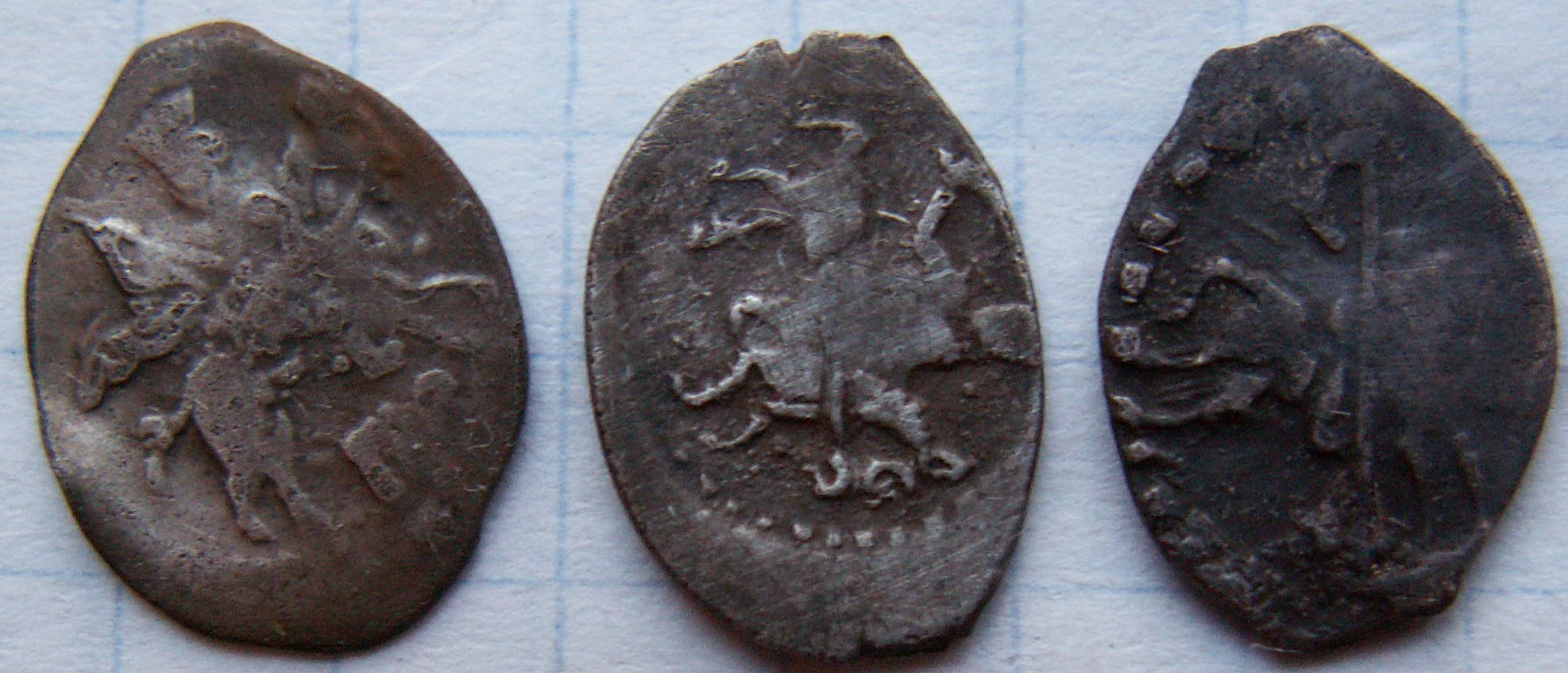 QUOTE(kiper @ May 22 2017, 21:55) Добрый вечер , уважаемые форумчане . Прошу помочь по монетам . Хотелось бы знать к какому времени относятся и , если возможно , примерную цену . Спасибо . Копейки Ивана Грозного, довольно частые, от 30 до 100 руб/шт. |