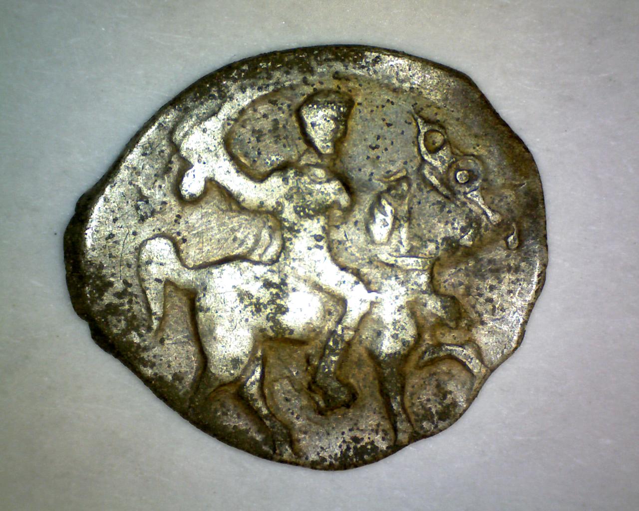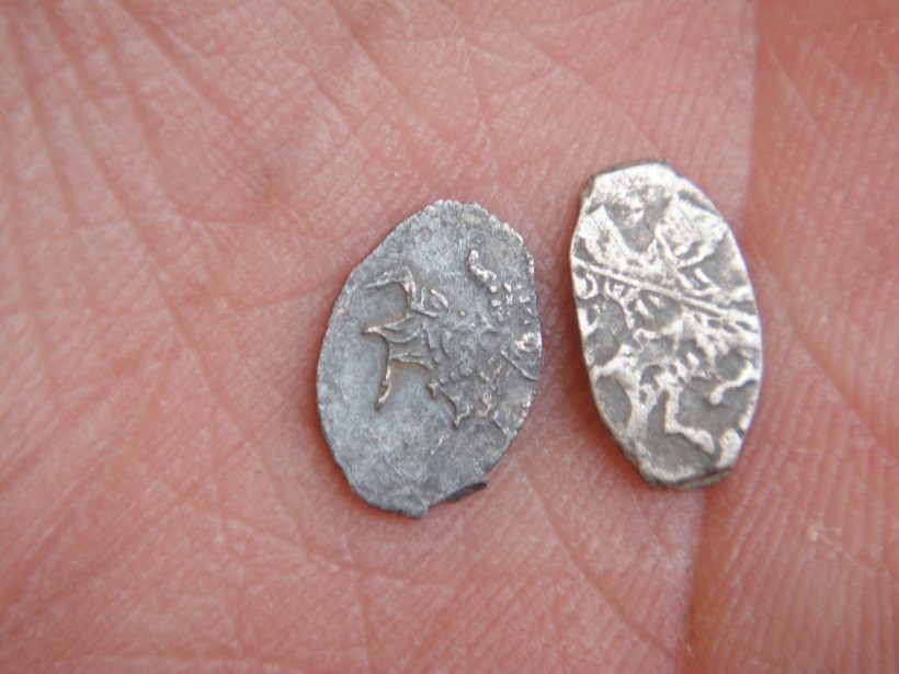 Просьба оценить.Спасибо. Денга с воином - перечекан денги нечастого типа "муравей" в другую денгу этого же типа (№6 в №2 или наоборот). Нумерация - по Волков И.В., Гоглов С.А., Титов Г.А., 2015. Денги Василия Дмитриевича Московского с «воином-муравьем». // Русь, Литва, Орда в памятниках нумизматики и сфрагистики. Вып. 1. Минск. С. 113 – 117. Вес на Китайских весах-0,69 -------------------- Копарями не рождаются - ими становятся.