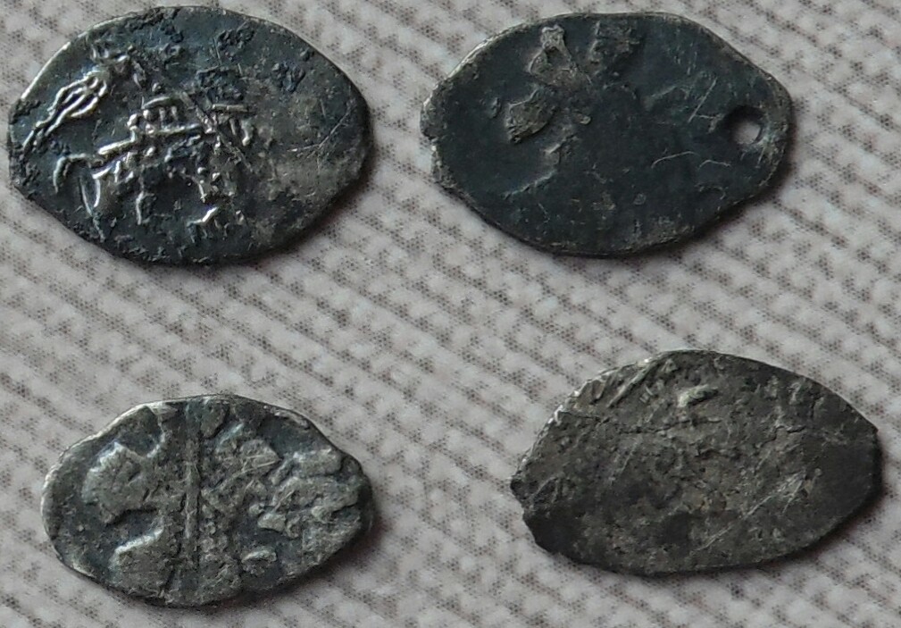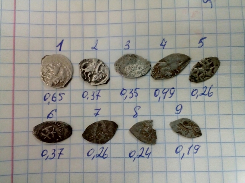 QUOTE(Уотсон @ Jul 5 2017, 21:08) Уважаемые форумчане, помогите с определением и оценкой данных монет. Вес 1-ой- 0,41гр., 2-ой- 0,7гр., 3-ей- 0,36гр. 1 полуденьга Василия Дмитриевича. 2. Денга ВД или Василия Темного 3.Можайск Иван Андреевич |