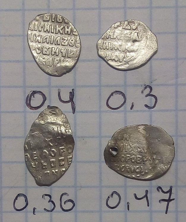 QUOTE(batson @ Jul 12 2017, 14:35) Доброго всем дня. Подскажите пожалуйста по чешуе. Интересно знать чья и сколько может стоить. С.Ув.Алексей. ... Копейки Ивана Грозного, все простые, редких нет... по цене до 100 руб./монета. Последняя - московская копейка Михаила Федоровича, до 50 руб. Сообщение отредактировано Белгород_поиск: Jul 12 2017, 21:11 -------------------- Продажа бон мира и средневековых монет по фиксу (Орда, чешуя и др.) - смотреть в моих темах.