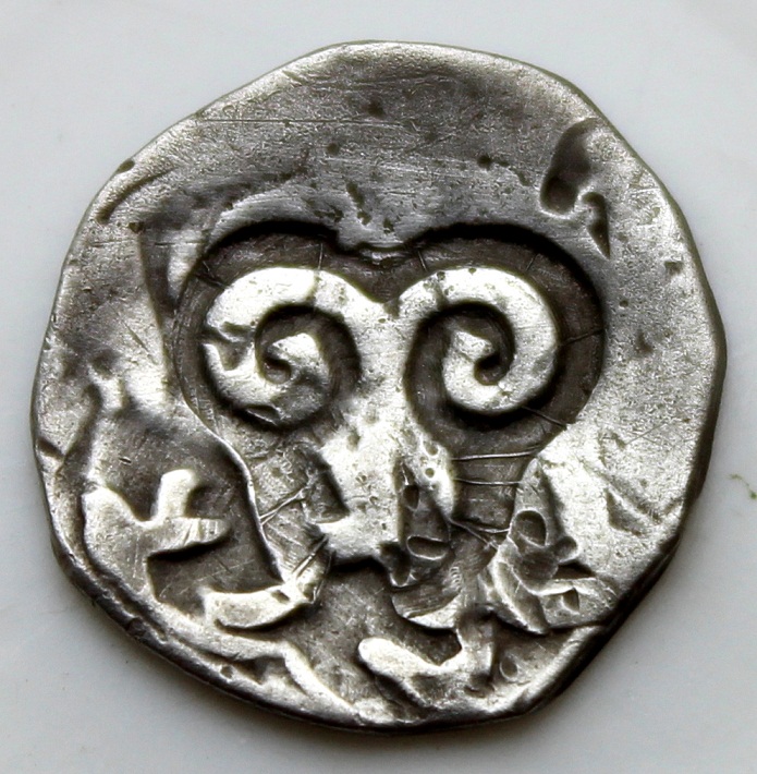 Здравствуйте. попалась интересная чешуйка - почти ровный кружок и штамп по центру. хотелось бы атрибутировать