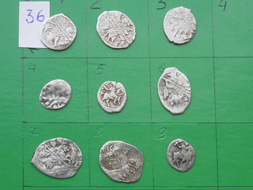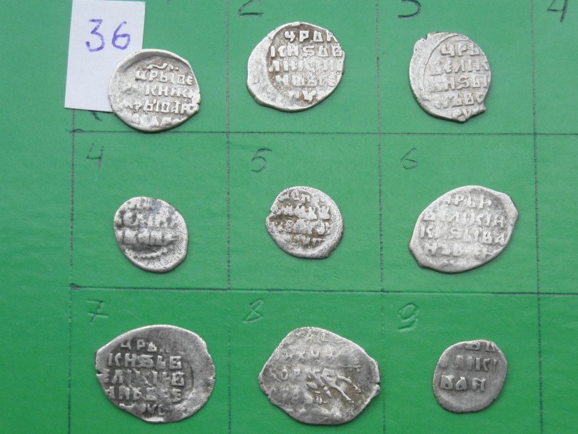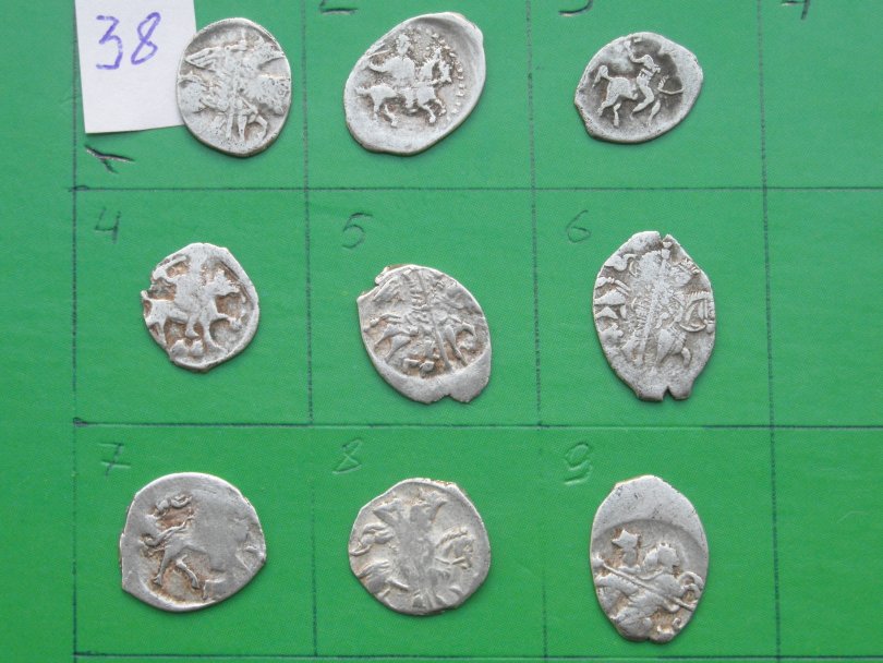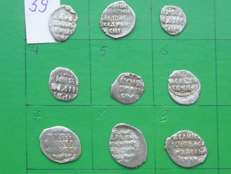 QUOTE(viktor.s @ Jul 31 2017, 12:57) Приветствую! Прошу определить какие возможно по КГ . Вес 0,40г, 0,25г, 0,48г, 0,67г, 0,46г, 0,28г. 1. Московская копеечка Михаила Федоровича Романова (1613-1645), КГ 407(10-15), рядовая. 2. Датированная копеечка Петра I Алексеевича, выбита на Старом денежном дворе в 1701 году, КГ 1667(18-15), рядовая. 3. Московская копеечка Михаила Федоровича, КГ 331(1-4), рядовая. 4. Новгородская копеечка Ивана IV Васильевича Грозного, КГ 79(7-7), рядовая. 5. Московская копеечка Михаила Федоровича, КГ 340(10-12), рядовая. 6. Датированная копеечка Петра I Алексеевича, выбита на Кадашевском денежном дворе в 1702 году, КГ 1927(20-40), рядовая. Сообщение отредактировано Tanais: Jul 31 2017, 14:22 -------------------- Знаешь - говори, хочешь узнать - слушай