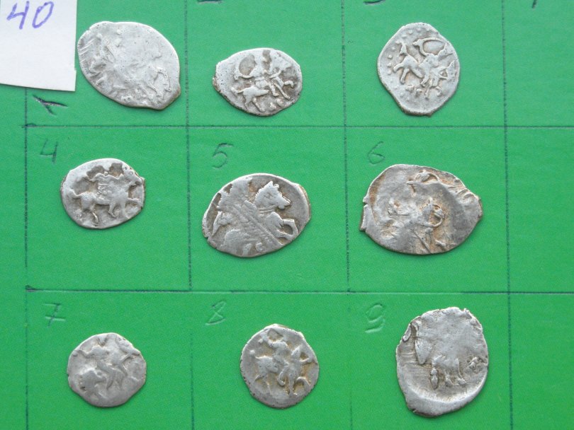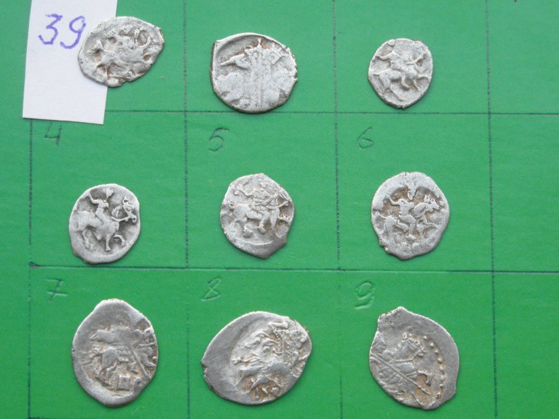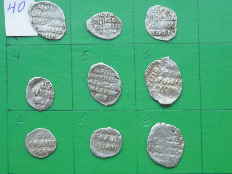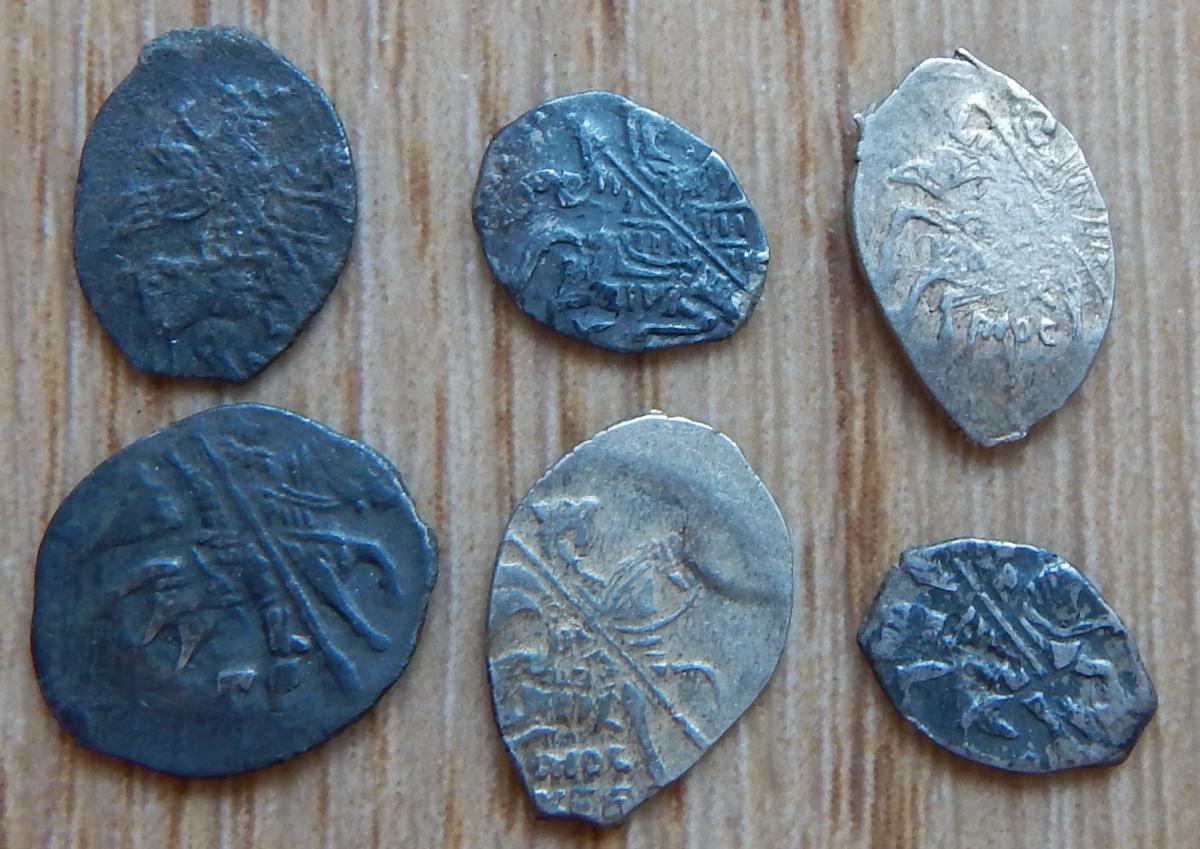 Уважаемые форумчане, помогите с определением и оценкой монет. Вес: 1- 0,69гр., 2-0,76гр., 3-0,53гр., 4-0,65гр., 5-0,76гр., 6-0,22гр. 1,2. Поздний В.Д.-ранний В.В. 2000+- 3. В.В. 200 5. Иван-3. 1500+ 6. Рязанская денга . Ц.м. |
