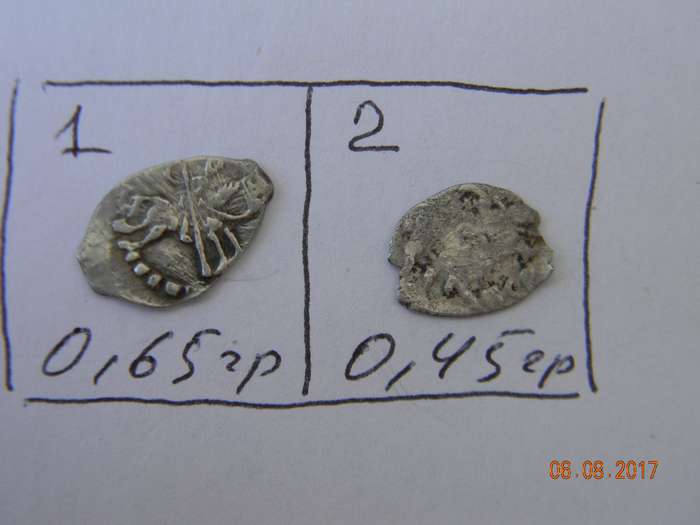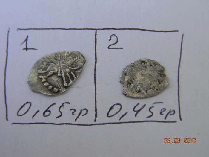 QUOTE(kubikk @ Aug 6 2017, 11:26) Добрый день,люди добрые! Прошу помощи определения и оценки.Большая не Грозный ? Всем ответившим спасибо! Первая - новгородская копейка Ивана Грозного, КГ 75. Обычная. Вторую не могу рассмотреть, вроде как виднеются буквы по всадником "ПСРЗ", скорее всего новгородская копейка Бориса Годунова... -------------------- Продажа бон мира и средневековых монет по фиксу (Орда, чешуя и др.) - смотреть в моих темах.