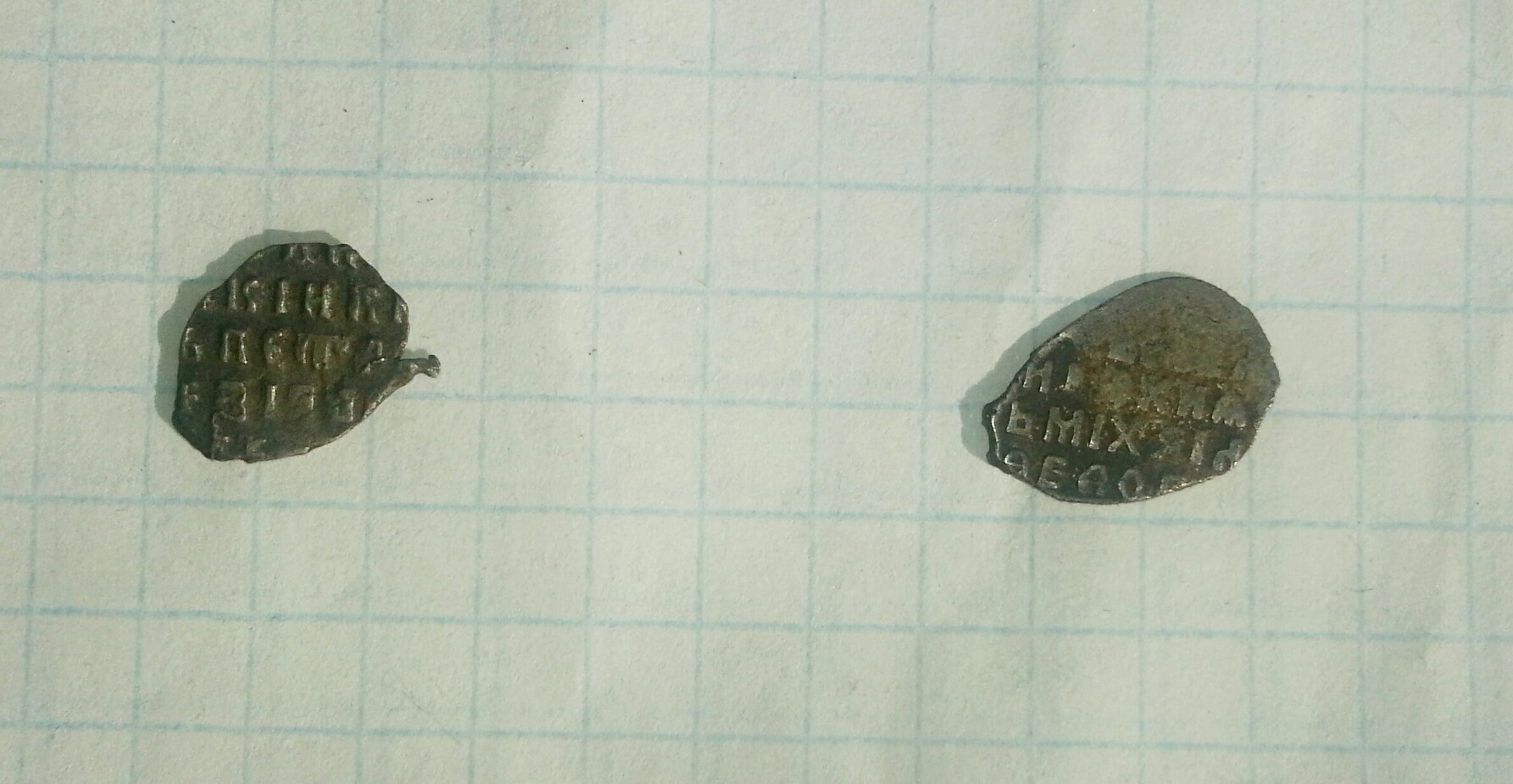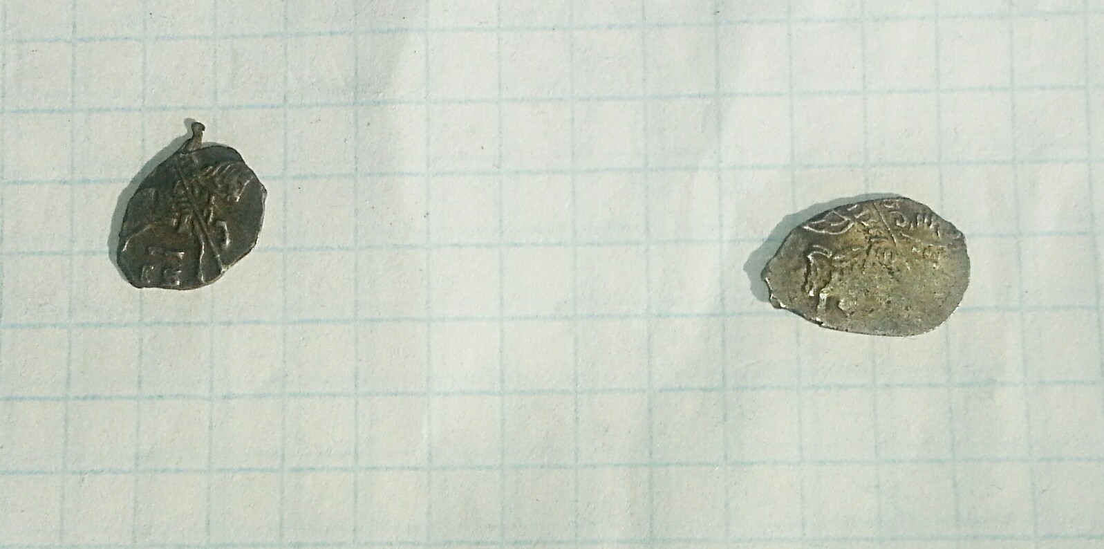 Добрый день! Прошу помощи в определение и оценке. Добрый вечер! Верхняя: копейка совместного правления с именем Ивана Алексеевича КГ 1497 30-40 руб. Нижняя: денга Ивана Грозного КГ 61 30-50 руб. |