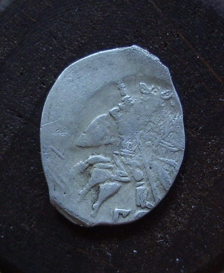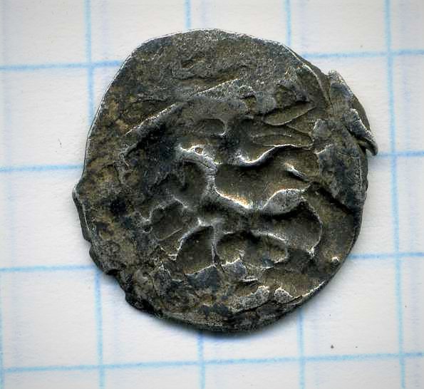 QUOTE(Л.Т.В @ Aug 19 2017, 12:11) Кто поможет? Сохранность - ниже плинтуса... И масса с размером не указаны. Если около 0,47...0,59 грамм - в качестве гипотезы - денга Суздальско-Нижегородского княжества, анонимный выпуск 1416-1423 гг., Тип IIб, подвар. 13.1 (всадник вправо поражает змея / трёхстрочное подражание монете Бердибека). Как более общо - что-то из первой четверти XV в. |