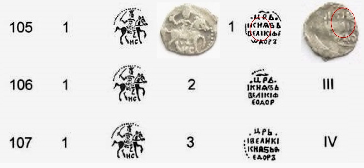 QUOTE(Банщик @ Sep 10 2017, 16:20) Московская денга Федора Ивановича (1584-1598), по КГ № 105(1-1), рядовая, по стоимости ~60 рублей плюс-минус на интерес покупателя. Обратите внимание на взаимное расположение буквы Н в слове князь и буквы I в слове великий. У № 106 они расположены иначе, а у № 107 легенда иная "ЦАРЬ И ВЕЛИКИЙ КНЯЗЬ ФЕДОР". Удачи вам! Сообщение отредактировано Tanais: Sep 10 2017, 17:17 Вложенные эскизы изображений -------------------- Знаешь - говори, хочешь узнать - слушай
