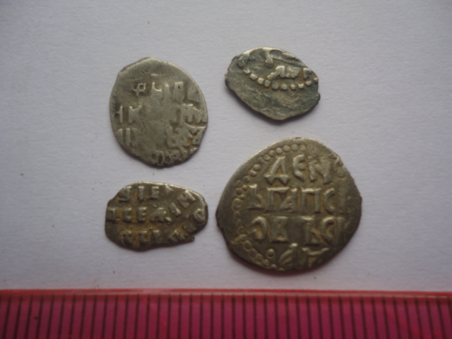 QUOTE(Симулянт @ Oct 15 2017, 11:29) Здравствуйте! Помогите определить чешую и есть ли, что-нибудь дельное? Копеечки Михаила Федоровича, среди которых есть и интересные: 1. Псковская копеечка Михаила Федоровича, КГ 659(3*-1), рядовая. 2. Поддельная копеечка Михаила Федоровича, описана во втором дополнении А.Савченко под номером 867А(8-4), выбита с новым сочетанием известных ранее штемпелей, штемпели описаны в КГ группа XII каталога периода правления Михаила Федоровича Романова. 3. Очень проблемная монета, для идентификации нужны хорошие снимки в высоком разрешении. 4. Московская копеечка Михаила Федоровича, КГ 538(25-39), рядовая. -------------------- Знаешь - говори, хочешь узнать - слушай