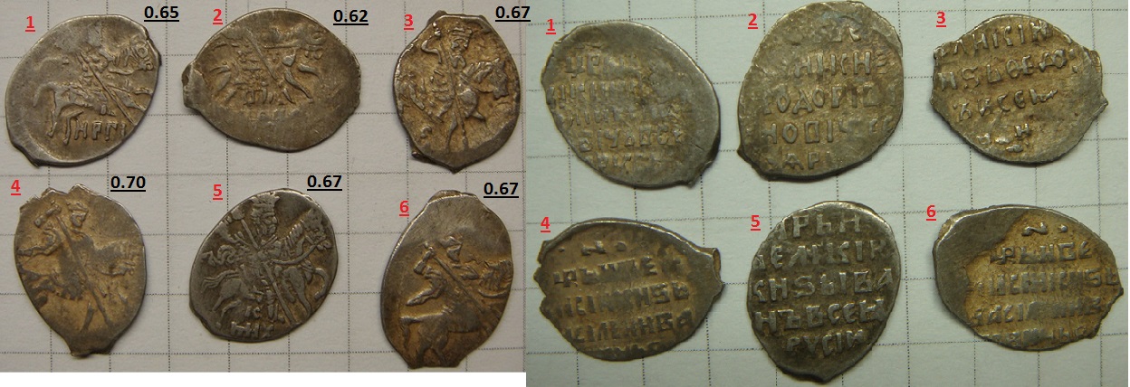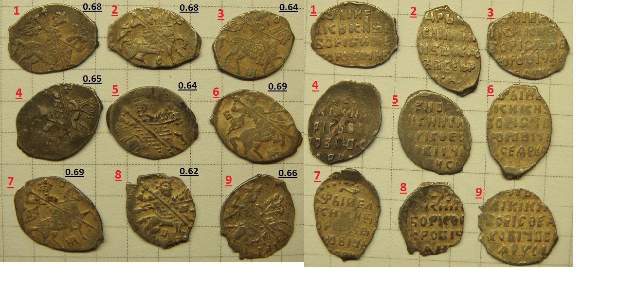 [quote=Tanais,Nov 15 2017, 23:16]1, 2, 4, 6. Московские копеечки Бориса Федоровича Годунова, КГ 173(4-2), рядовые, стоимость ~ 120±20 рублей.