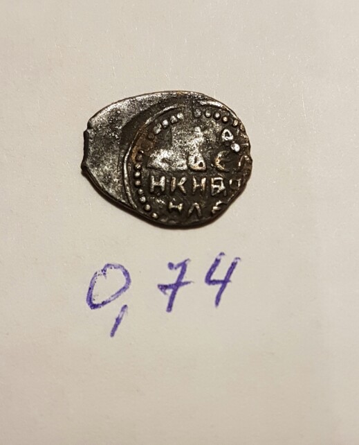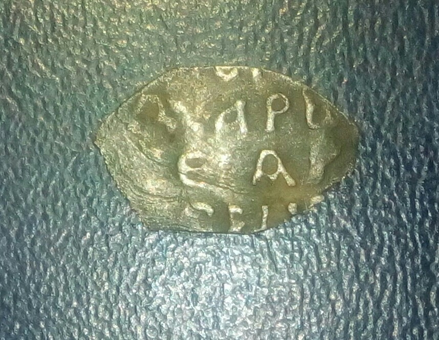 Здравствуйте,чешуя целая у нас гость нечастый,попалась такая чешуйка с монисто и озадачила надпись,буквы более вытянутые.Подскажите пожалуйста для кругозора,это фантазийная подделка того времени или подлинная,надпись если правильно разобрал,правление Михаила Федоровича.