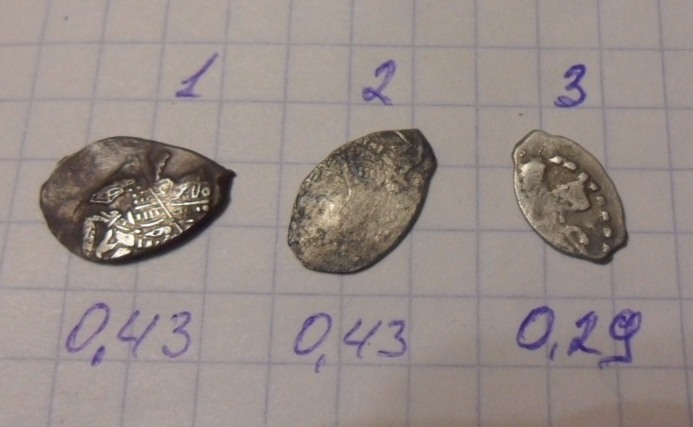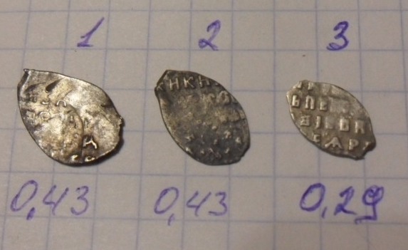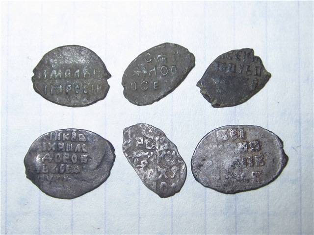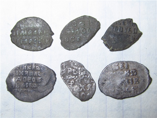 QUOTE(Bormalei @ Nov 23 2017, 21:20) Доброго всем вечера. Помогите с определением и оценкой монеток. копейки: Алексей, Алексей, Петр(единоличное правление до 1704, Старый двор), все вместе рублей 80-100. |