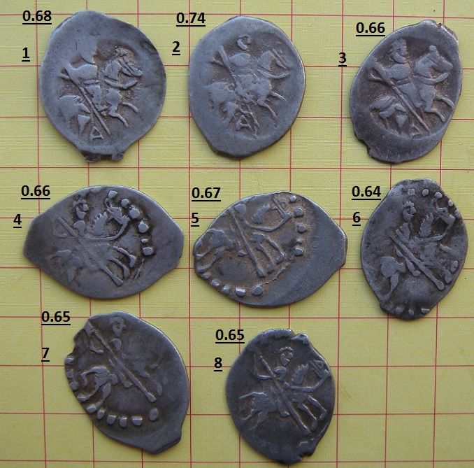 QUOTE(Matveev AS @ Dec 10 2017, 21:49) 1) Иван Грозный КГ 65 без степени редкости. 2) Федор Иванович КГ 105 без степени редкости. 3) Петр I совместное правление КГ 1558 без степени редкости. 4) Михаил Федорович, двойное соударение. Примерно 30-150 руб/шт. Большое спасибо |