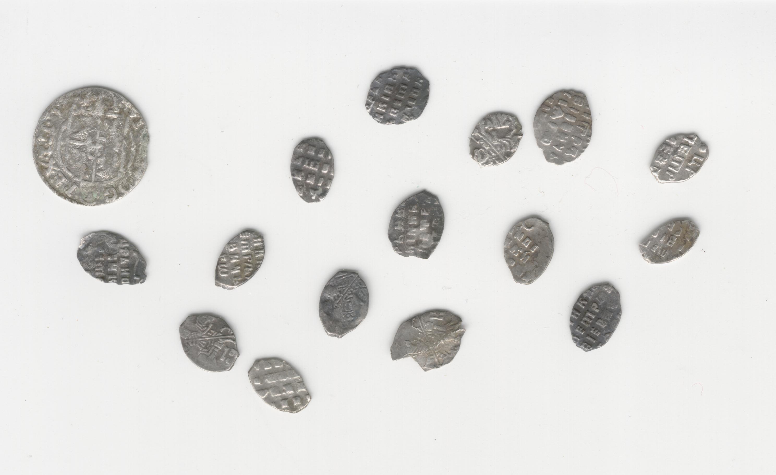 нашёл на слёте первую чешую, в моих краях такие не попадаются. Потому помощь нужна в определении. Ибо меня поставило в тупик: надпись ЦРЬ и ВЛК КНЗЬ" хорошо читается, а имени царя нет. Предполагаю -Иван Грозный. Так?