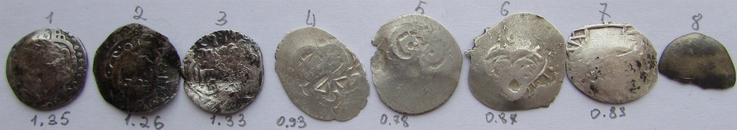 Уважаемые знатоки данной темы! Помогите пожалуйста идентифицировать . В моей местности чешуя не водится.. Купил, хоть в руках подержать...а принадлежность не спросил в своё время. Доброе утро! 1) Иван Грозный КГ 73; 2) Михаил Федорович КГ 415; 3) Михаил Федорович КГ 340; 4) Иван Грозный КГ 93; 5) Денга Иван Грозный КГ 67; 6) Денга Иван Грозный КГ 71. |