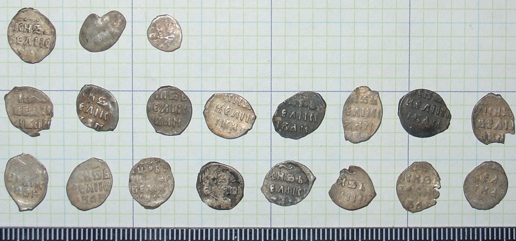 QUOTE(Kopatel" @ Jan 12 2011, 04:01) Всем доброго времени суток. В конце прошлого сезона наткнулись на распашку чешуи. За вечер собрали около сотни монет. Больше на поле не удалось вернуться. Вот моя часть находок, прошу определить Грозный, денги и полушка(№ 3). QUOTE(Выговец @ Jan 12 2011, 16:47) Доброго времени суток всем! Уважаемые спецы чешуиты Иван III и Василий III. -------------------- новый каталог по царской чешуе