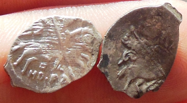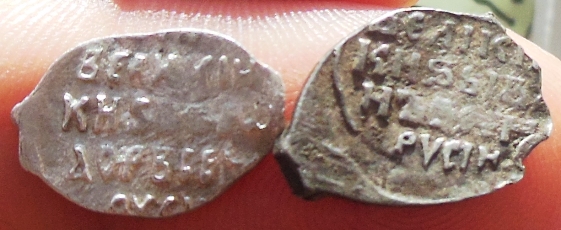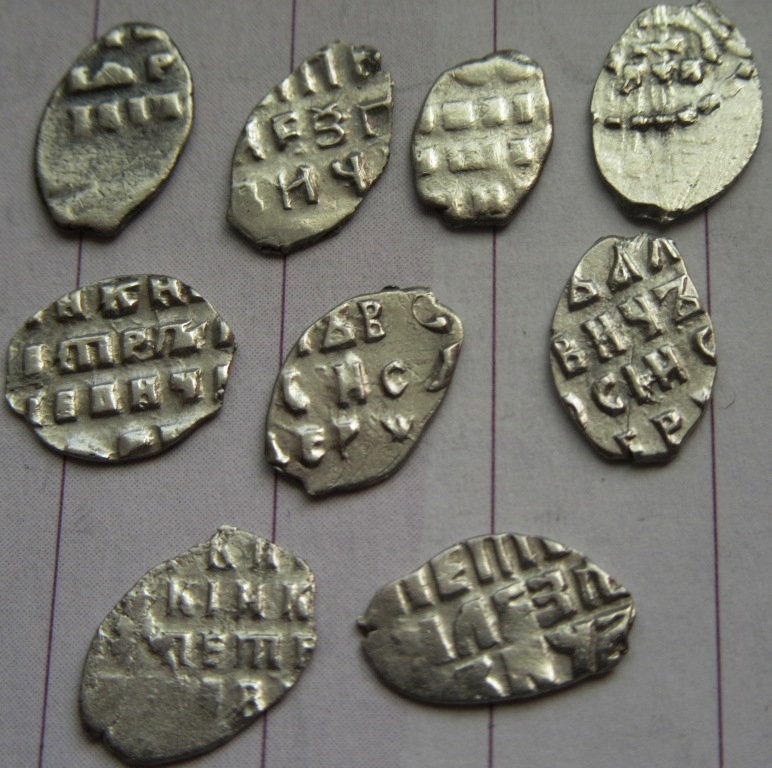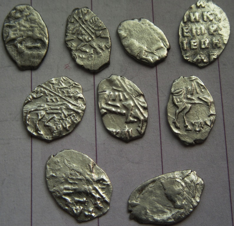 Здравствуйте! Прошу помощь в определении и в оценке данных монеток. Рязанская область. Весы китайские. 1 и2 денга Грозного 3. копейка Грозного 4.копейка Михаила Федоровича...брак. 5. копейка Алексея Михайловича редких не увидел. |