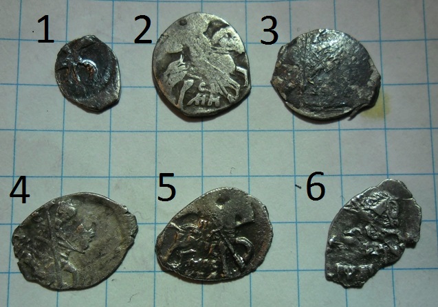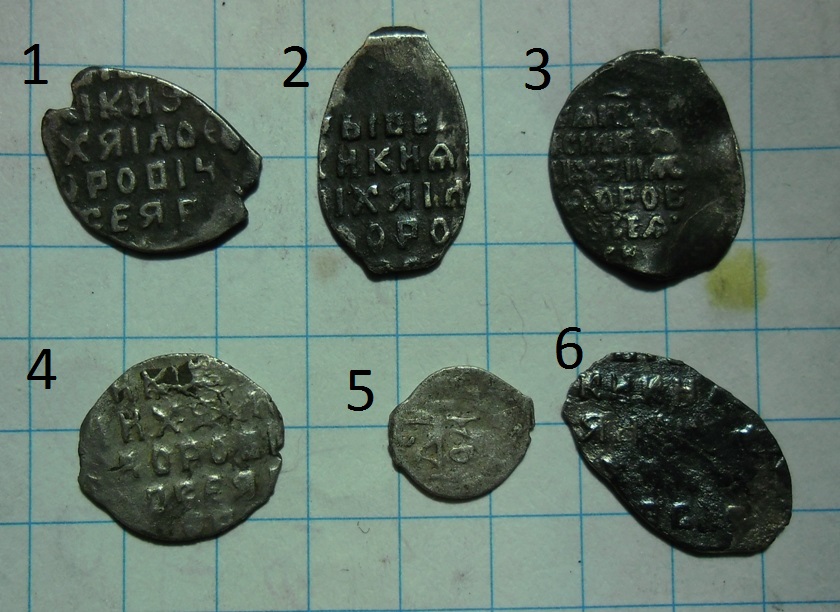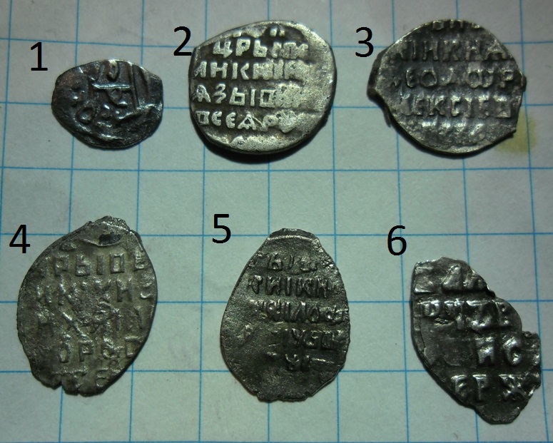 QUOTE(MakLay @ Mar 9 2018, 09:46) 1. Полушка-птичка Ивана Грозного, 150-200 руб. 2. Копейка Ивана Грозного, до 50 руб. 3. Труп копейки Федора Алексеевича, цена металла. 4, 5. Копейки Михаила Федоровича, в районе 40 руб. за монетку. 6. Кадашевская копейка Петра 1, 1711года, в плачевном состоянии, цена металла. С ув. Спасибо большое. -------------------- Carum est, quod rarum est.