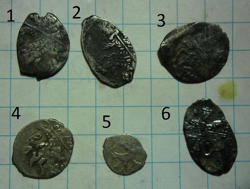1 - Новгородская денга Ивана 3 Благодарю ! А есть какие-нибудь мнения по степени редкости этого штемпеля.Впервые такой попался , уж больно детальный всадник с конём. И был бы очень благодарен со второй монеткой. |