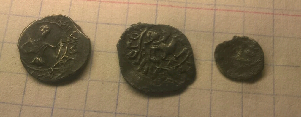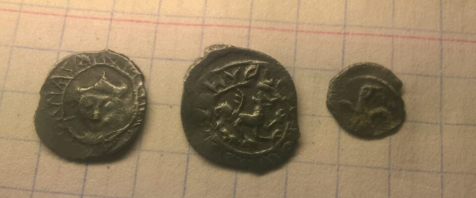 QUOTE(Xtreeme @ Apr 9 2018, 23:22) Доброго времени суток.Подскажите пожалуйста по чешуйкам. Можно фото первой монеты отдельно и вес, а так чекан в Угличе. 1-денга великого князя Ивана Михайловича. 2- денга великого князя Бориса Александровича. 3- Не знаю, какя-то полушка. Что не так... спецы поправят. И регион находки, можно в личку. |