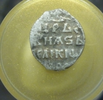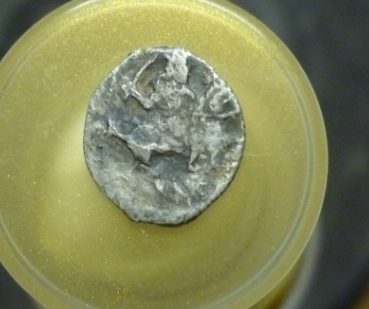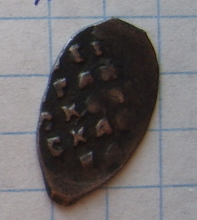 Доброго дня. Помогите определить половинку чушуи. НАйдена в клинском районе московской области. РЯдом когда то находили на этом месте кашинский удел. (просмотрел - из кашинских ничего не подходит). Спасибо.
