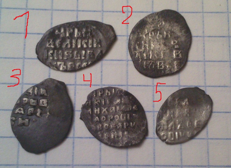QUOTE(УСТИН @ May 3 2018, 05:52) Здравствуйте,подскажите по монеткам определение и оценка,регион Ряз обл ,заранее спасибо! 1,2,3 - Грозный; 4,5 - Михаил Федорович. (все простые, КГ: 89,77,75,367,602). |
