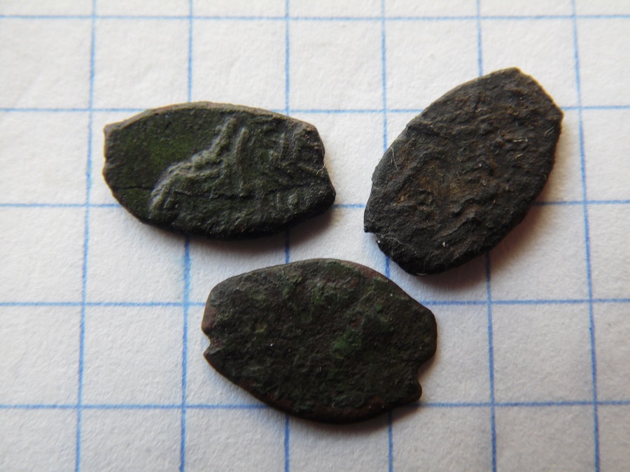 QUOTE(kaskad @ May 11 2018, 21:20) Здравствуйте! Подскажите пожалуйста по монеткам. За ранее спасибо. полушка и две денги Ивана Грозного |