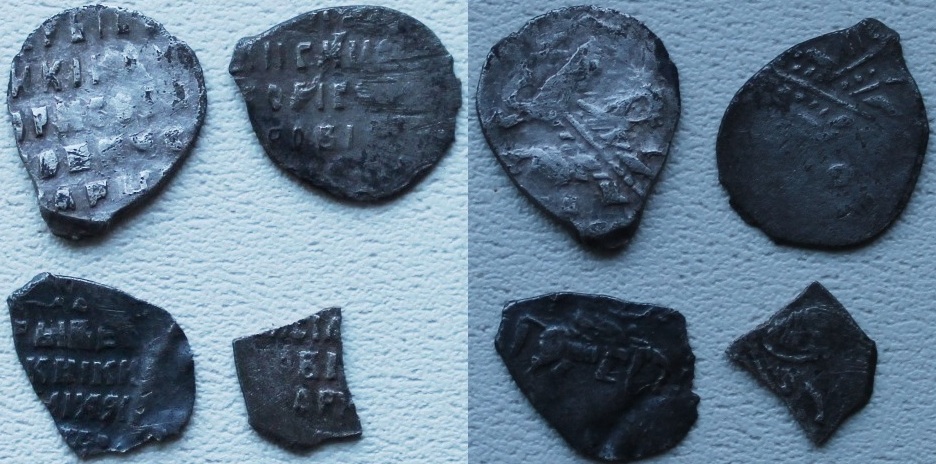QUOTE(mulenya @ May 20 2018, 18:23) Здравствуйте. Подскажите по чешуйкам, если это возможно. Две верхние 0,70. Спасибо. 1,2- новгородские копейки Бориса Федоровича 3 - денежка Михаила Федоровича 4 - останки московской копейки Шуйского -------------------- Человек, который много совершает, и ошибается во многом (Еврипид)