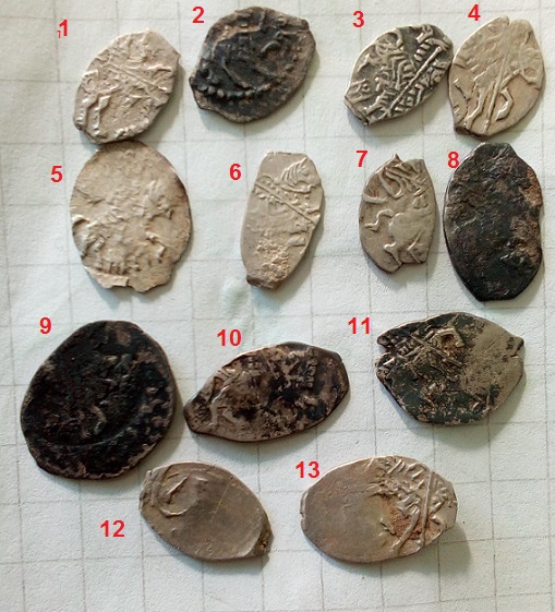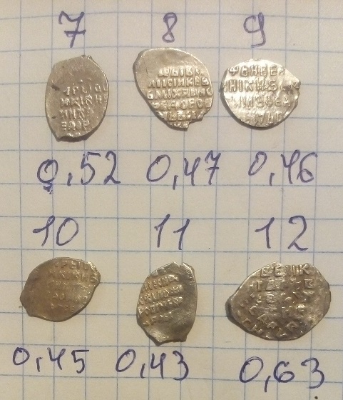 QUOTE(никола_ич @ May 29 2018, 13:53) 1. Двустороннее подражание НСВК. Фото бы получше. 2. Поокское подражание. Фото реверса никакое. 3. Анонимная денга НСВК. От 100 р. 4. Даниил Васильевич. От 100 р. 5. Анонимная великокняжеская денга. Нижний Новгород под властью Москвы. 1,5-2,5 т.р.. 6. Даниил Васильевич. От 2 т.р. 7. Анэпиграфная денга. Нижний Новгород под властью Москвы. До 1 т.р.. 8. Денга НСВК с легендой «печать великого Б». Фёдоров-Давыдов отнёс её к чеканке Бориса Константиновича. По состоянию 100-200 р. Огромное спасибо. |