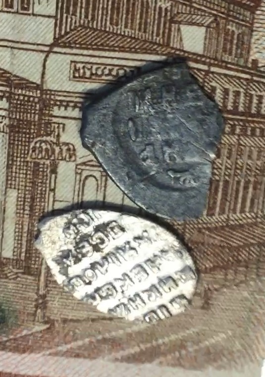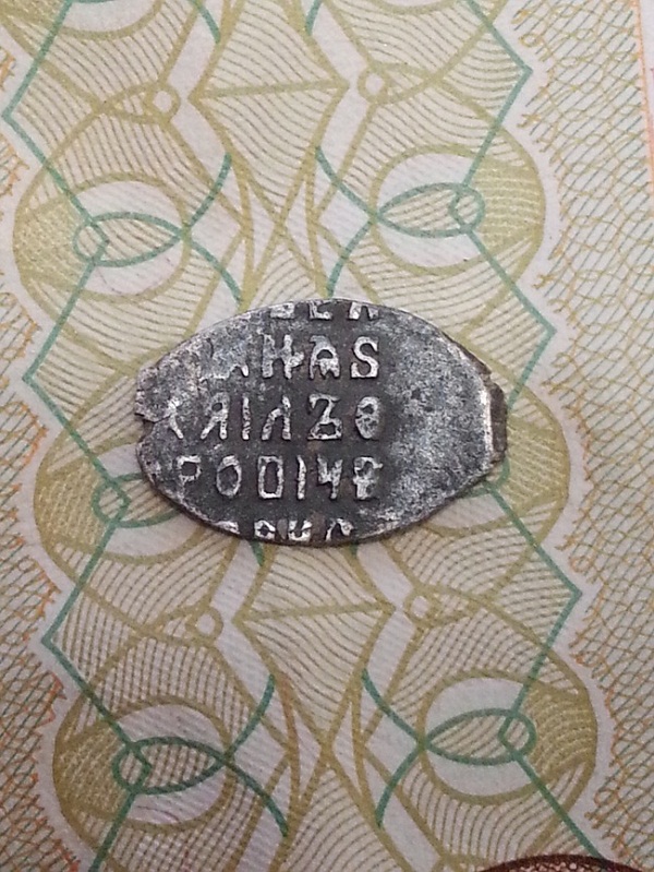 Доброго дня...попался вот такой обломок чешуи...место находки Можайский район Мос обл....Смущает что очень большая...раза в два три больше тех что попадались...С одной стороны Георгий Победоносец...с другой КН...ОЛ..АН....Князь Олег Андреевичь???? Хотя конечно могу и ошибаться....Просьба в атрибуции если возможно....С Уважением