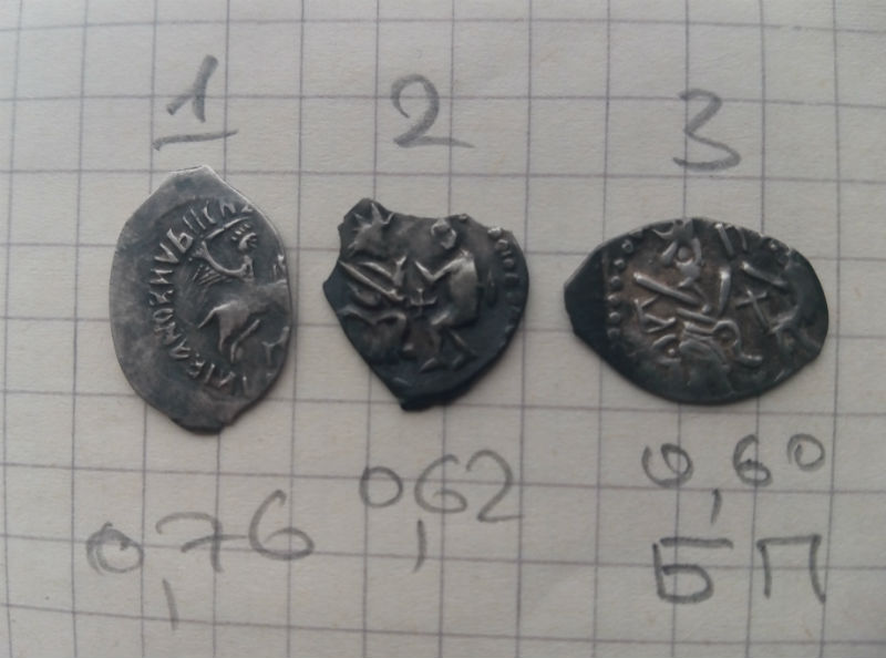 QUOTE(highscreen @ Jun 21 2018, 10:16) Доброго времени!!! Прошу определить и оценить. Тверская губ. С уважением 1. Деньга Новгородская Василий III 500+ 2. и 3. Деньга Новгородская времен независимости , обломок на любителя, целая 1500+ -------------------- Интересует любая информация по денежной чеканке Василия Темного.