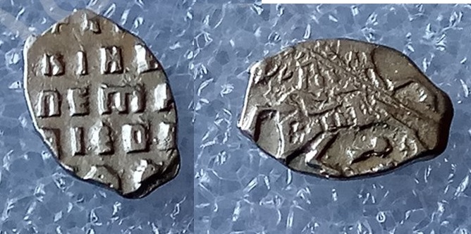 [quote=Bozon,Jun 26 2018, 21:13] Новгородская денга времён Ивана III - Василия III. Фото бы покрупнее. Спасибо за ответ Bozon. [/quote] Иван III Васильевич. Зайцев № 120 (с буквой Ю под конём). Простая. Чеканена около 1495...1500 гг. |