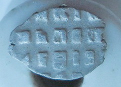 QUOTE(VENOMSTI @ Jun 27 2018, 21:05) Приветствую! Подскажите пожалуйста по остаткам от чешуи,может кто встречал такую в сохране и сможет определить. ![]() ![]() Можно предположить, что это деньга Ивана III ОС звезда с арабской надписью по кругу Зайцев №5 -------------------- Интересует любая информация по денежной чеканке Василия Темного.