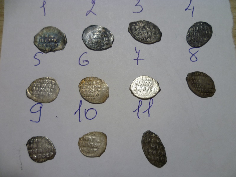 Всем доброго дня!Прошу помощи в определении и оценке чешуек.Заранее спасибо. 1. Новгородская деньга Ивана-3. От 500р. 2. Московская деньга Ивана-3. Самая поздняя и частая. 50р. 3. Московская поздняя деньга Василия-2 (Темного). Ц.м. |