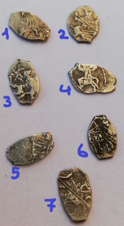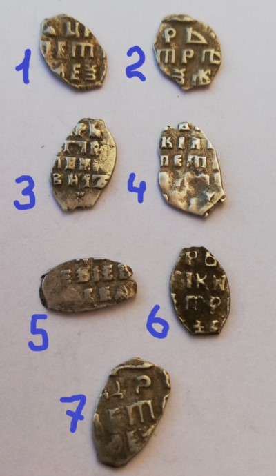 QUOTE(TPS @ Aug 22 2018, 23:18) Доброго вечера уважаемые коллеги подскажите по каталогу, если получается! Спасибо! 1. копейка Петра, Старый денежный двор, 1703 год. Скорее всего - редкая, но в таком виде это уже не имеет роли. 2. копейка Петра. ИМХО - Кадашевский двор 1701-1709 гг. 3. Московская копейка Михаила Фёдоровича, ГКХ № 381, простая. Около 1617-1619 гг. 4. ИМХО - московская копейка Михаила Фёдоровича (оборотка вверх ногами). Чуть постарше предыдущей. 5. Московская копейка Михаила Фёдоровича. Начало 1640-х. ГКХ № 635, простая. 6. Московская копейка Михаила Фёдоровича, конца правления. |