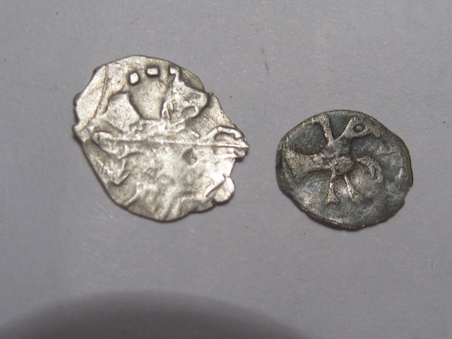 QUOTE(cambooo @ Oct 5 2018, 00:19) Доброй ночи! Проверьте, пожалуйста, правильно ли я копейки Михаила Фёдоровича опознал: 1. НГо - Великий Новгород - КГ# 646 - 1617-1627 2. НГ - Великий Новгород - КГ# 656 - 1617-1627 3. ПС - Псков - КГ# 662 - 1627, редкость IX 4. К-Ч МОСКВА - Москва - КГ# 529, 1631-1643 В годах совсем не уверен. Спасибо! ХЗ. Картинок-то нет. Если МФ-КЧ у которого под конём ОС/МК (л.с.28 по ГКХ), то это третий период, т.е. 1626-1635 гг., чекан - примерно рубеж-самое начало 1630-х гг. Новгородки, да, чеканили в 1617-1627 гг. |