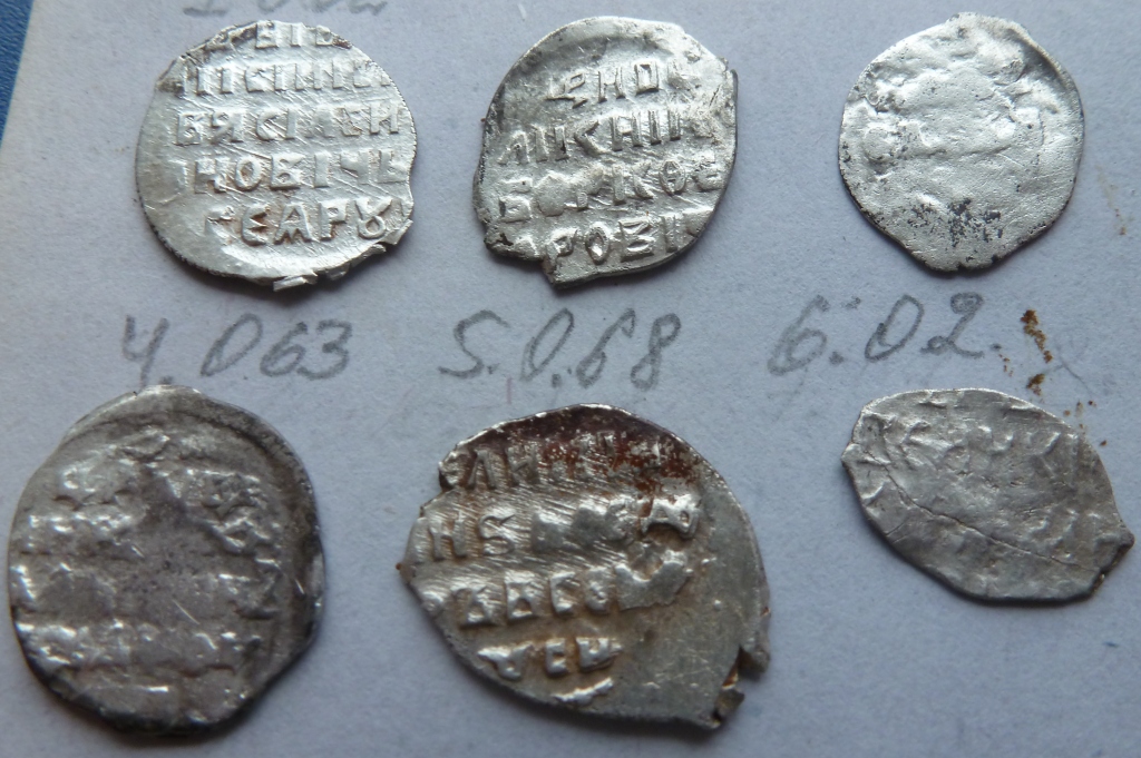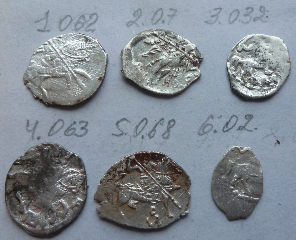 Здравствуйте, Уважаемые форумчане. Прошу оказать помощь в определении и оценке данных монет. Заранее благодревью. 1) Михаил Федорович КГ 415 2) Федор Иванович, денга КГ 105 3) Петр I, денга, единоличное правление, ГКХ 1790 IX ст. редкости 4) Михаил Федорович КГ 331 5) Михаил Федорович КГ 520 IX ст. редкости. №3 примерно 1000 руб, остальные 50-100 руб/шт. |