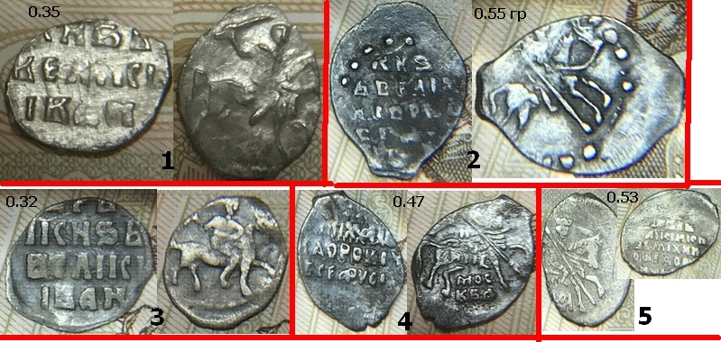 QUOTE(The Black Rider @ Oct 17 2018, 15:49) 5 московских копеек Михаила Федоровича и копейка Петра единоличного правления,1706 год. Михаил весь простой (КГ: 588, 333, 482, 338, 407). Благодарю!!! |