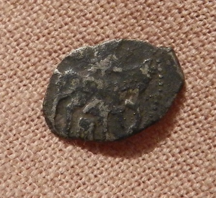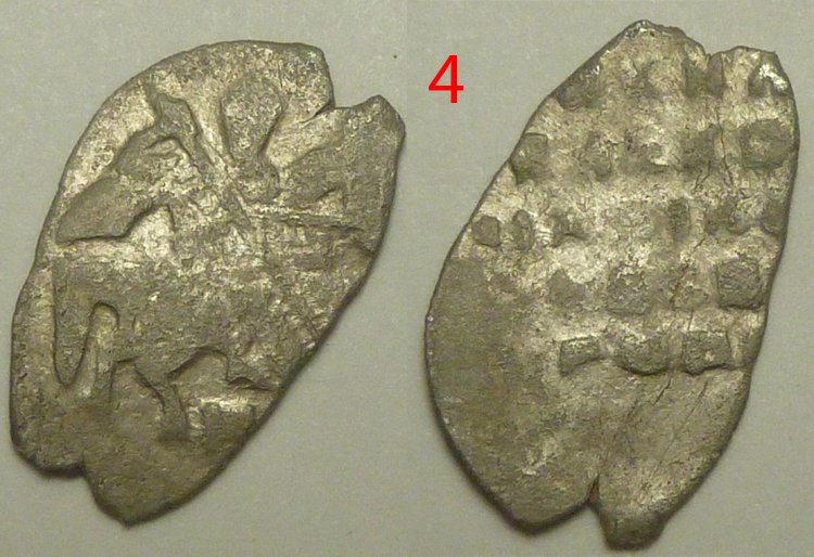 Добрый вечер. Прошу определить монетку, всадник подзатерт, и буквы под ним прочесть не могу. Шведская оккупация Новгорода, КГ 327. |