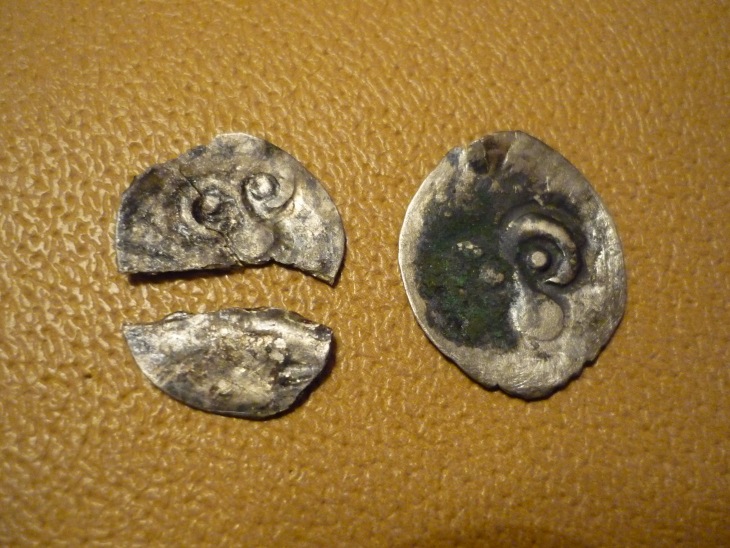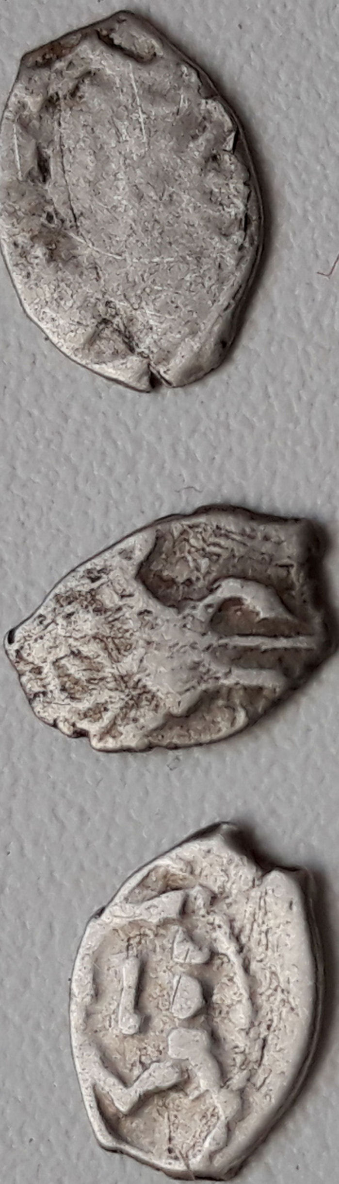 Здравствуйте! Прошу оценить монеты и атрибутировать. Вес сломанной 0.74 г., целой 0.89. Спасибо!