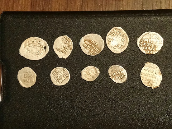 QUOTE(Сторожка @ Dec 10 2018, 20:39) вот ещё посмотрите Копейки и денежки Ивана Вас. В нижнем ряду - 3 денга и 5 коп Федора Ив. Все рядовое, сохран средний. |