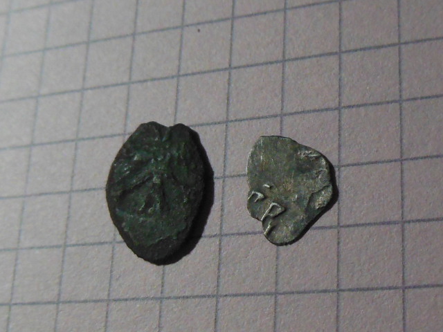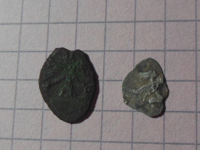 QUOTE(lexa terkin @ Dec 11 2018, 20:29) Всем здравия,помогите в определении медной чешуйки (мне видится двуглавый орел и корона между этих голов) и по полушке Грозного тоже интересно,там на ней птица на обоих сторонах.С уважением,буду благодарен,спасибо. московское пуло с двуглавым орлом и полушка Михаила Федоровича КГ 702. |