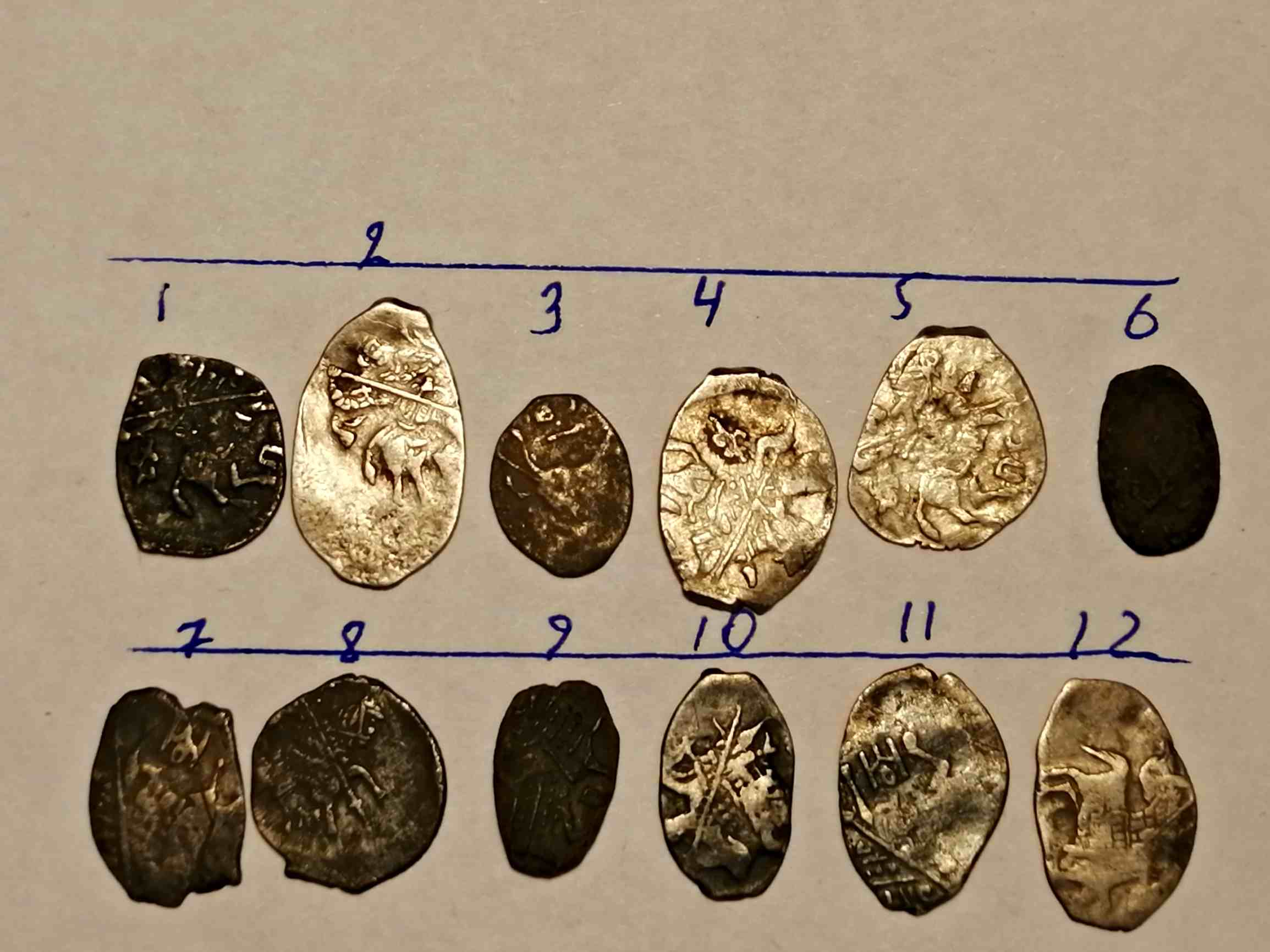 QUOTE(Ф.Ю.Н. @ Feb 5 2019, 14:32) Всем доброго времени суток.Подскажите по чешуйкам.Заранее благодарен всем ответившим. 1.3. копейка Михаила Федоровича 2. копейка Грозного 4. денга Грозного |