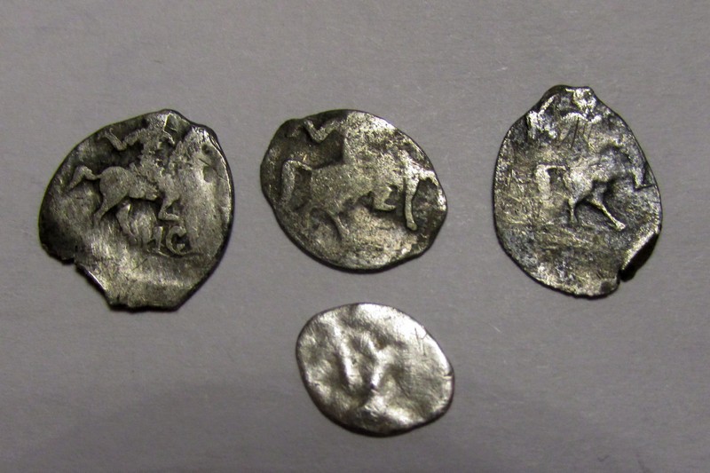 QUOTE(Лабух @ Feb 25 2019, 21:19) Здравствуйте. Прошу помощи по просьбе знакомого. Есть предположение что псковский грошевик Алексея Михайловича. Вес, думаю в районе 0.80г. Вряд ли , хотя бы потому, что на монете всадник с копьем (на грошах и алтынах с булавой). Видно крайне паршиво, но возможно это фальшак (отсюда и чудной вес. хотя за их весом и на мон.дворах-то следили не пристально, как за серебром). |