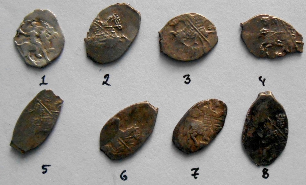 QUOTE(piranya @ Feb 25 2019, 22:00) Доброго времени суток. Помогите пожалуйста в атрибуции и оценке монет. С уважением. 1 вес 0,27 гр. ![]() ![]() 2 вес 0,31 гр. ![]() ![]() 3 вес 0,50 гр. ![]() ![]() 4 вес 0,63 гр. ![]() ![]() 5 вес 0, 44 гр. ![]() ![]() 1 - Петр Алексеевич, копейка Кадашевского двора, какого-нибудь 1702-1703 года, 2,4 - Грозный, деньга и копейка, КГ61 и 77, 3,5 - московские копейки Михаила Федоровича самого начала правления, КГ 330 и 331, все простое и не дорогое. |