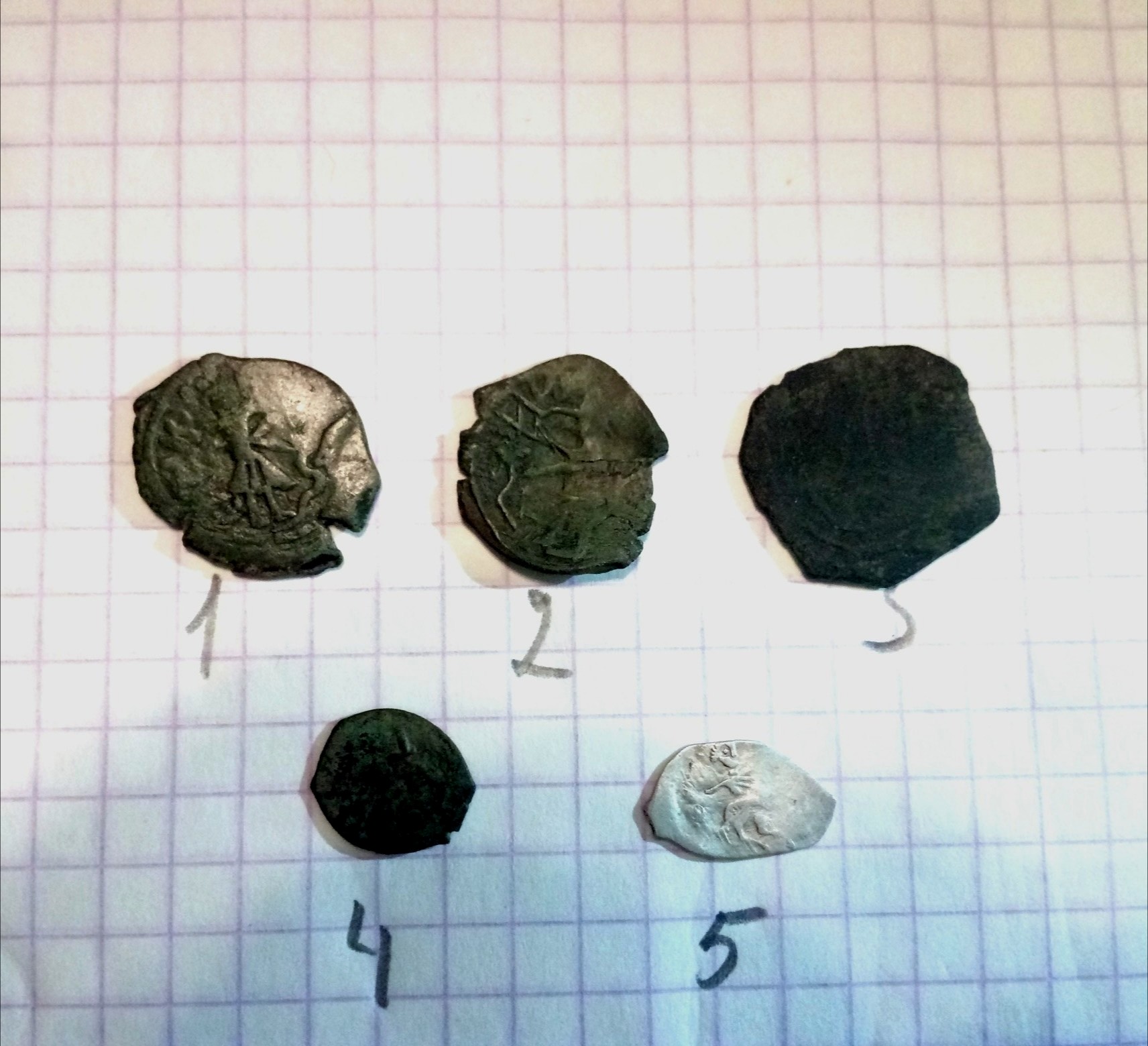 QUOTE(N.I.K. @ Apr 16 2019, 20:13) Добрый вечер. Помогите определить и оценить чешую. Тульская область. Вес 1-0.56 грамма 2-0.65 грамма 3-0.67 грамма 4-0.61 грамма 5-0.69 грамма верхний ряд - грозные, нижний - годуновы |