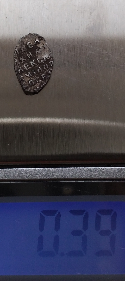 QUOTE(boyскаут @ Apr 19 2019, 10:01) Доброго времени! Уважаемые форумчане,прошу помочь с определением и оценкой данной монеты! Находка с крайнего выезда по Владимирской губернии. Размер приблизительно с одну клетку тетрадного листа (5×5 мм.)может чуть больше. Весов к сожалению под рукой нет. Монету не чистил,только сполоснул водой от грязи. Если монетка интересная и потребуются фото более лучшего качества,сделаю без вопросов. С уважением. переславская полуденежка |